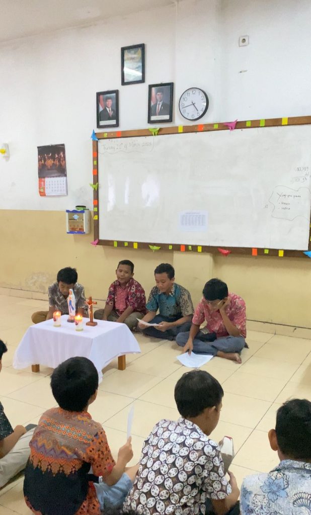 Bagi siswa yang beragama Katholik, mereka mengikuti kegiatan jalan salib salah satu bagian penting dalam agama mereka. Dalam kegiatan ini, mereka merenungkan setiap langkah perjalanan Yesus Kristus, yang penuh dengan penderitaan dan pengorbanan. Siswa diajak untuk meneladani ketabahan dan kasih yang diajarkan melalui jalan salib ini. Siswa beragama buddha Membaca Pharita yang berisi cerita-cerita yang penuh dengan hikmah dan ajaran moral, yang menginspirasi siswa untuk hidup dengan lebih baik, penuh kasih sayang dan kedamaian.